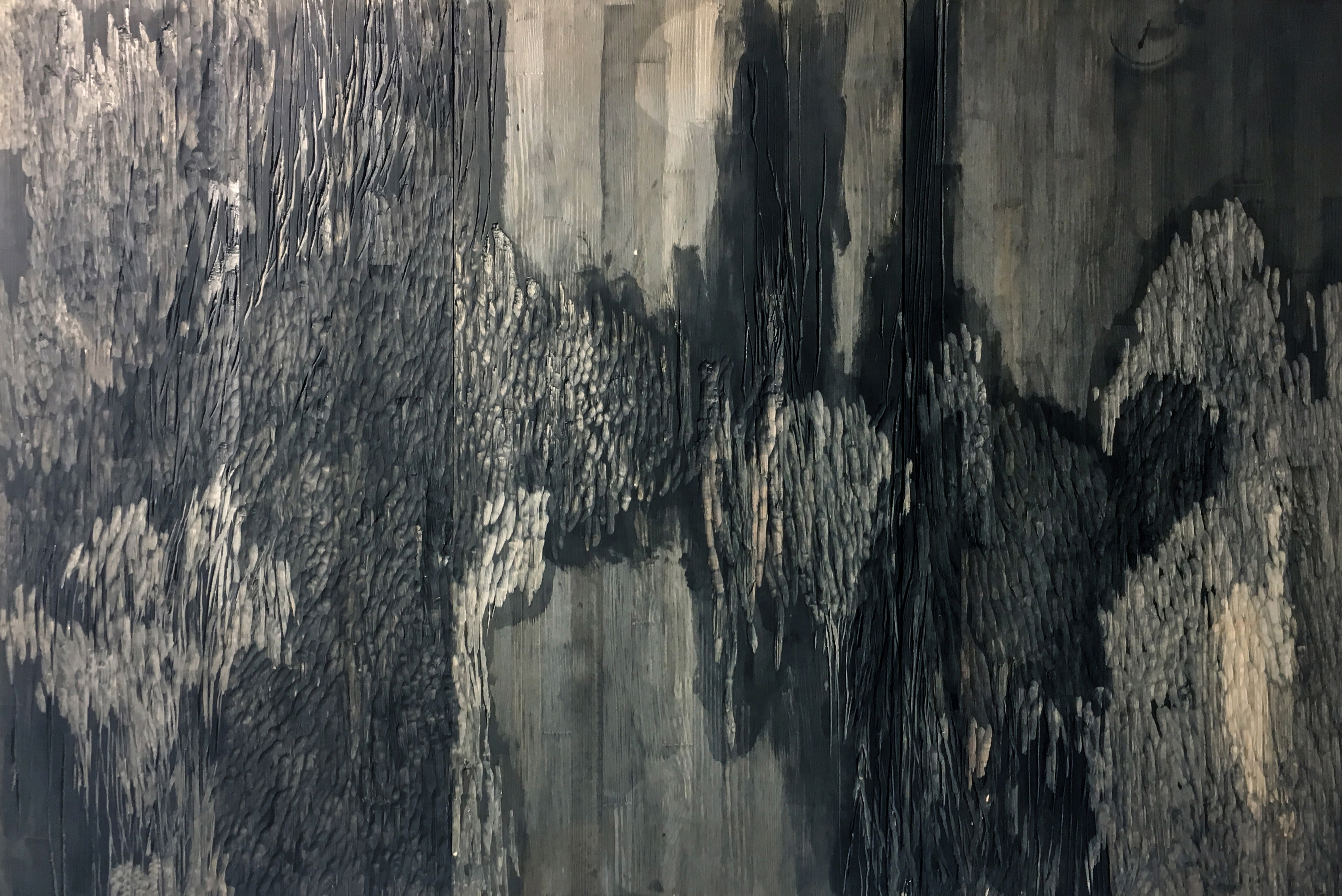 / 147 cm x 100 cm x 2 cm / woodcarving, painting / pinewood, pigment, varnish /